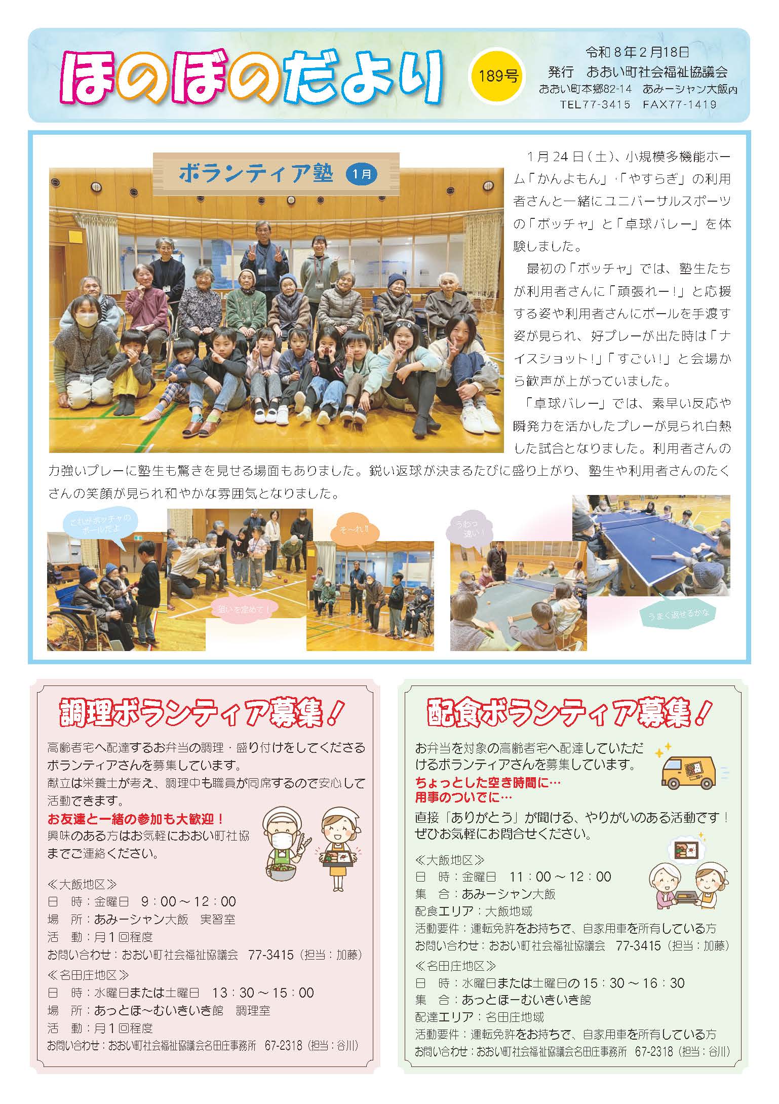 「ほのぼのだより189号」 (2026年2月 発行)